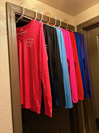 Short Sleeve, Long Sleeve, Sleeveless (mens) plus Racerback and Sleeveless Tank (womens).